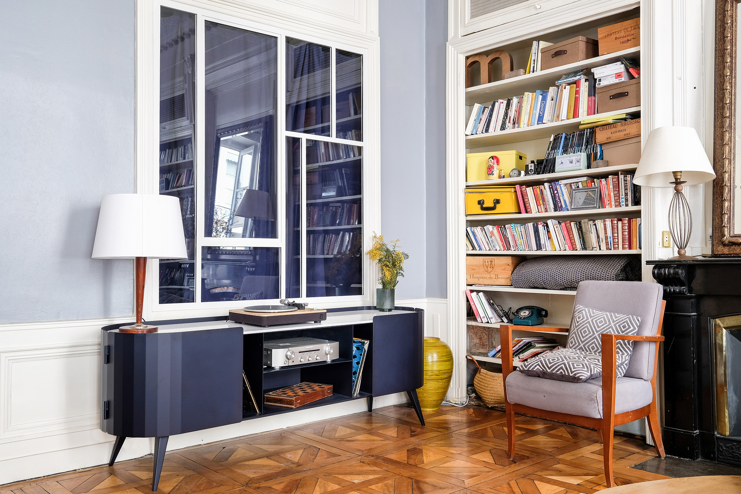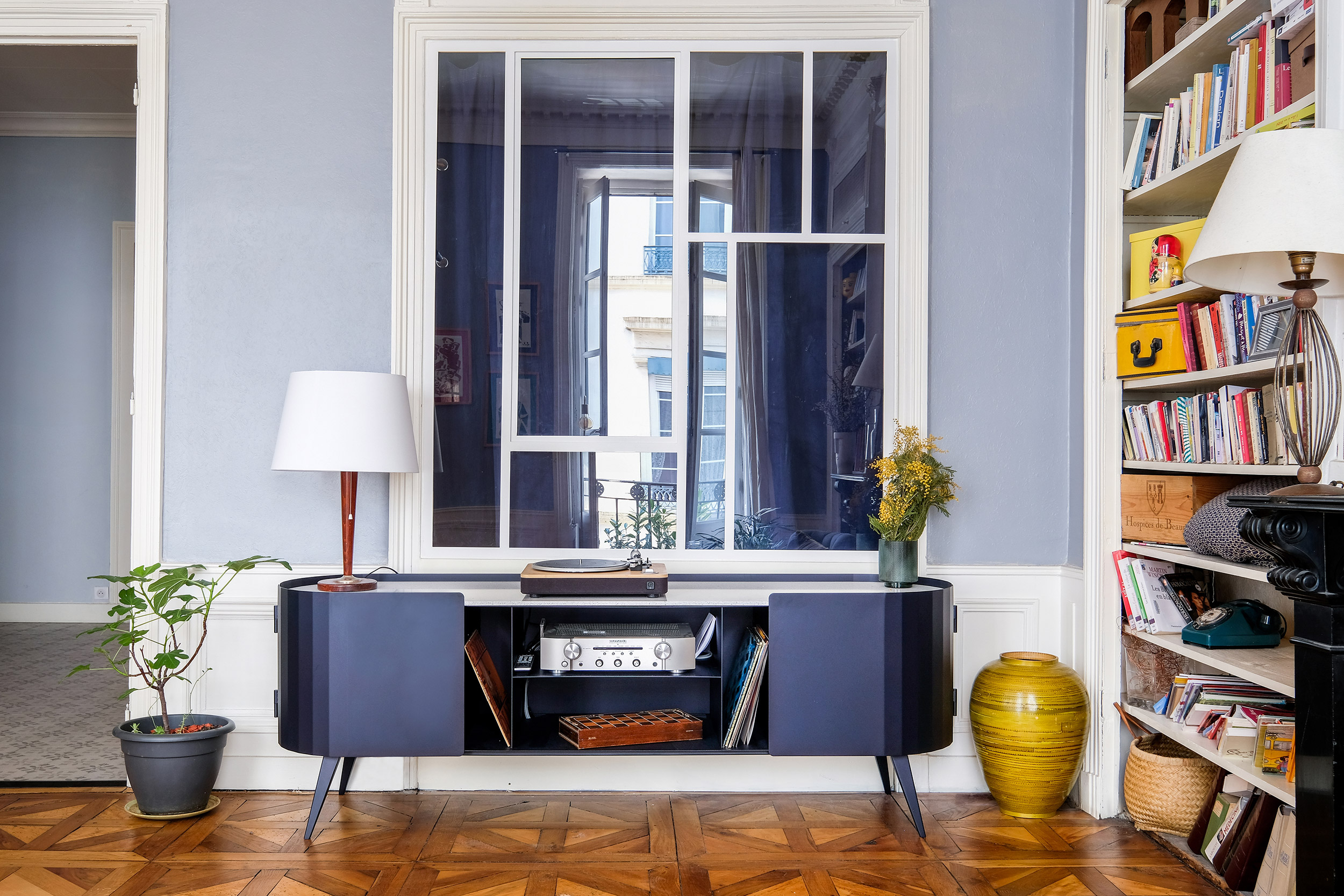 Alliant design contemporain et personnalisation artisanale, le buffet Carnot transforme votre collection de vinyles en véritable objet d’exposition tout en restant pratique et élégant.