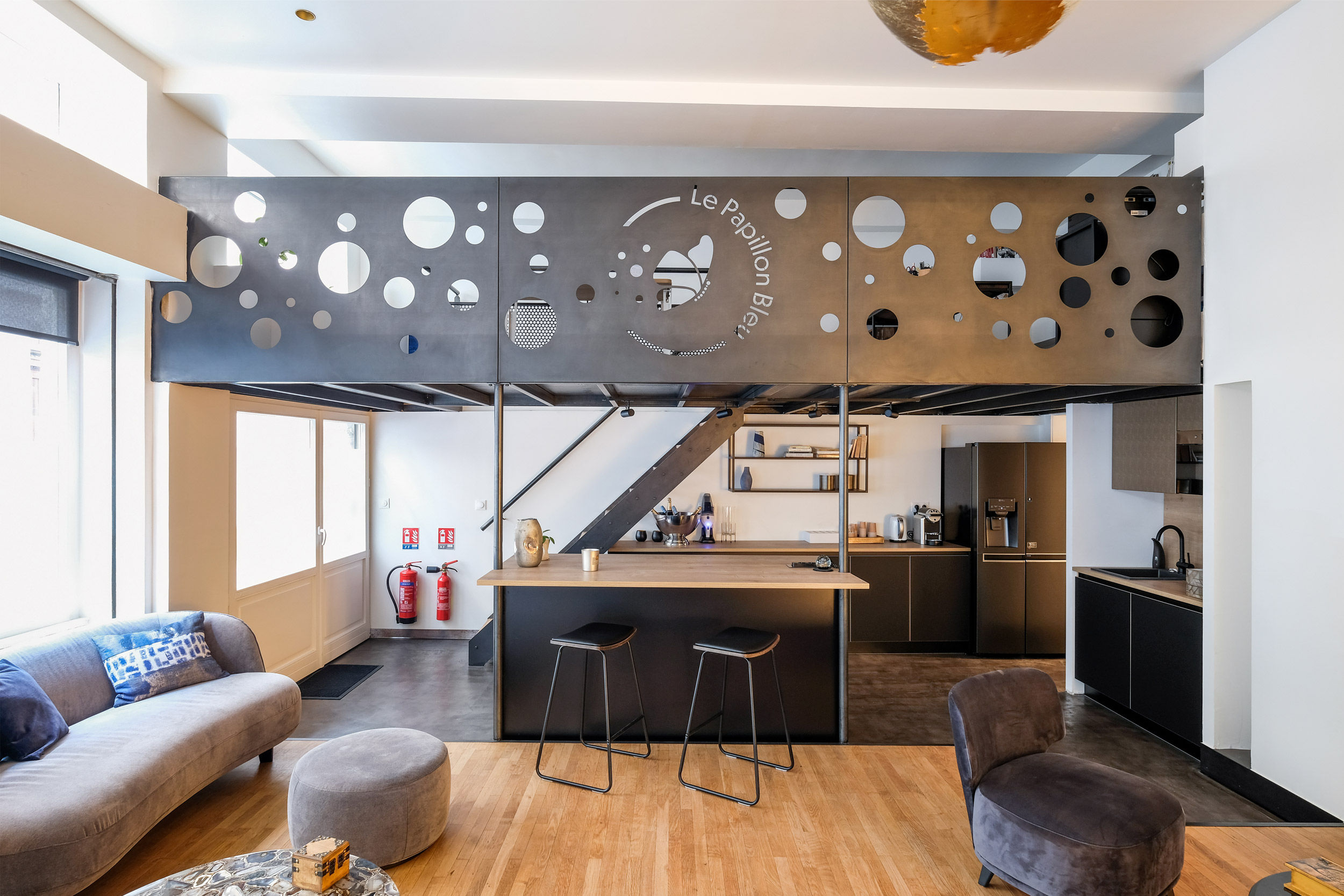 Ce projet lyonnais, réalisé dans le quartier emblématique de la Croix-Rousse, illustre la maîtrise des volumes et des matériaux pour créer un espace unique, alliant acier, bois et savoir-faire artisanal.