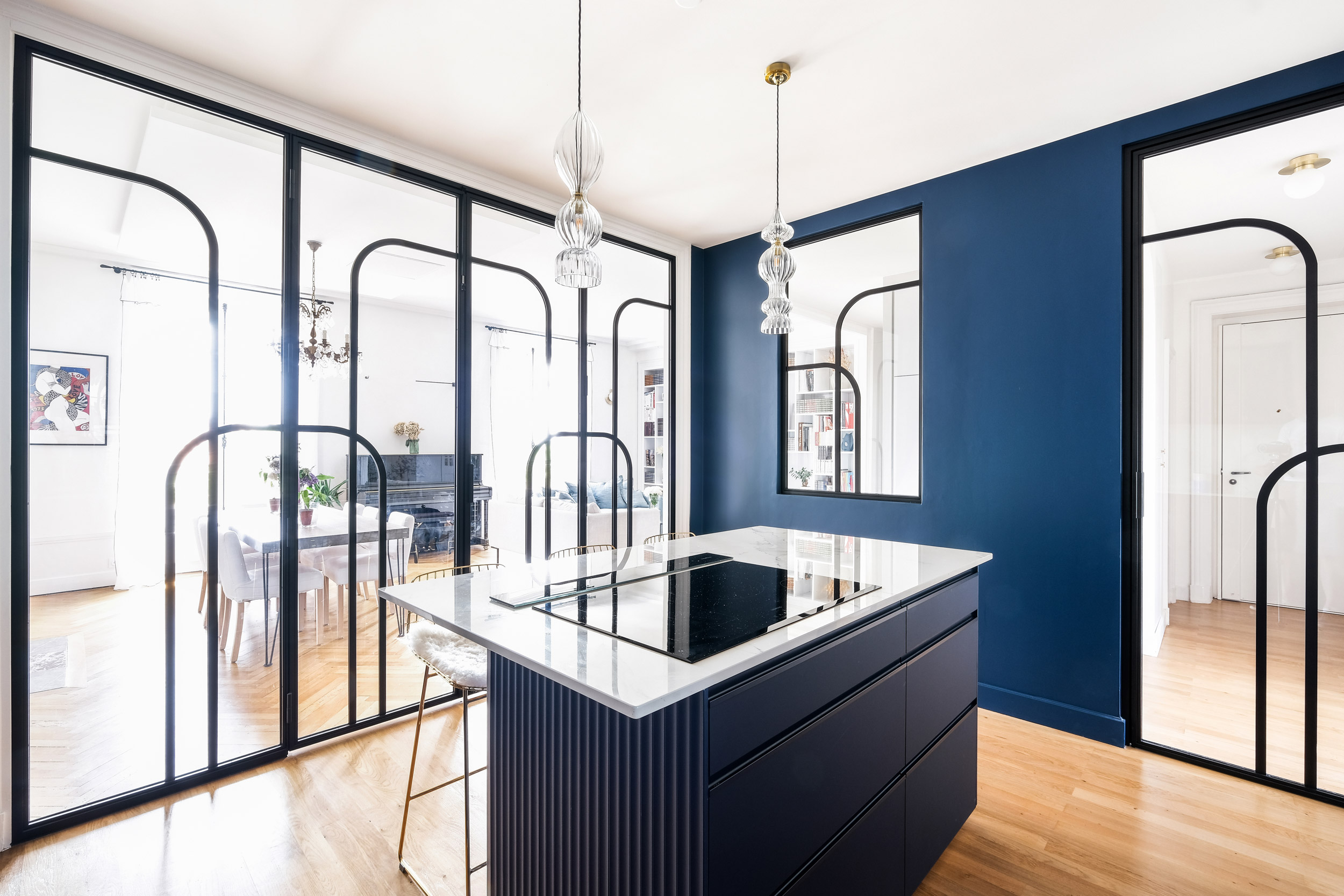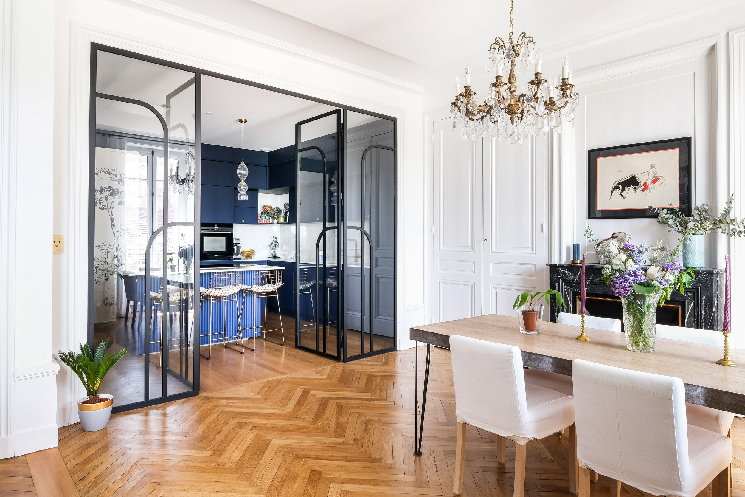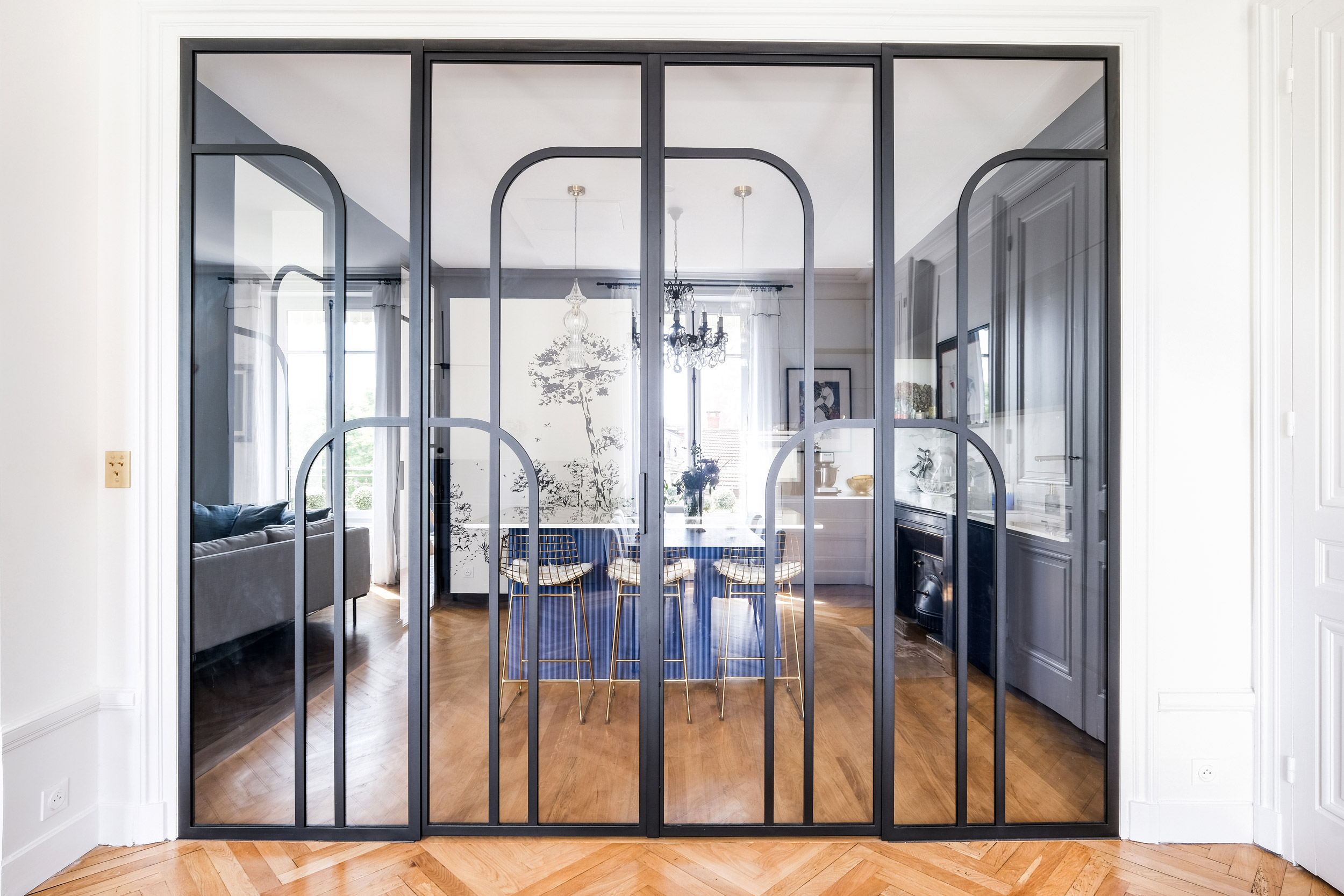 Dans le quartier emblématique de la Croix-Rousse à Lyon, Ox-idée a réalisé cette verrière Art Déco sur mesure pour un appartement haussmannien. Située dans la cuisine, la verrière apporte lumière et séparation élégante, tout en respectant le style typique des intérieurs de la Croix-Rousse à Lyon.