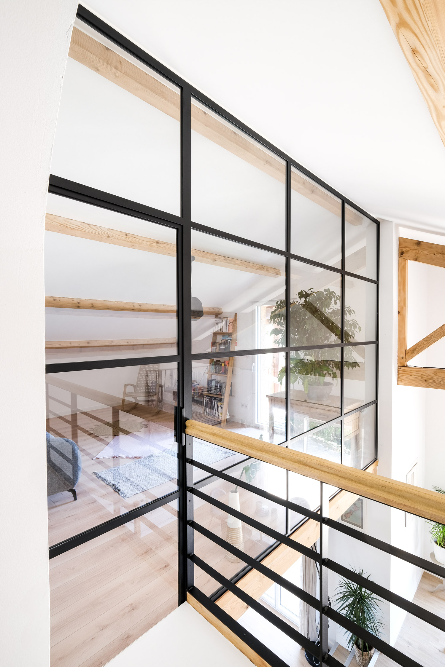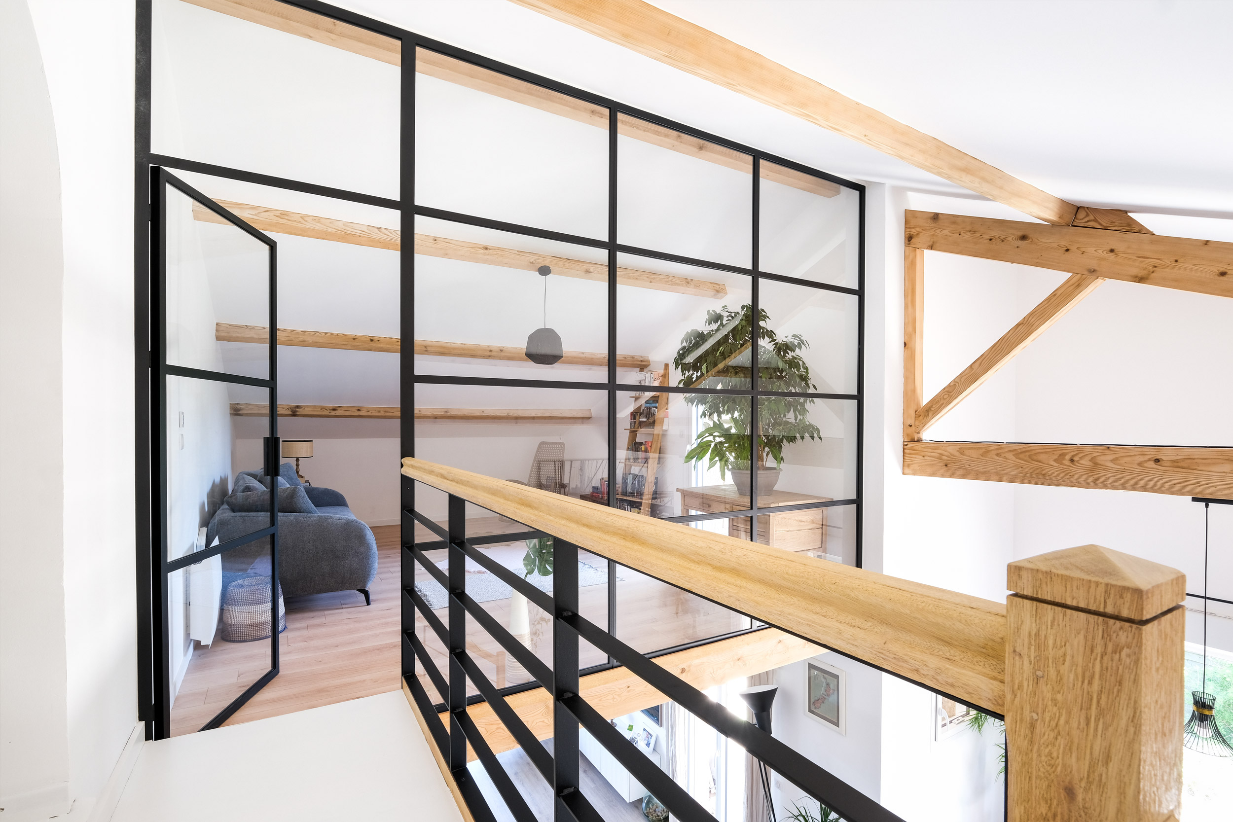 Pour un projet réalisé par Ox-idée, nous avons conçu une verrière contemporaine sur mesure à Couzon-au-Mont-d’Or. Installée pour fermer une mezzanine et créer un espace fermé destiné à une chambre d’amis, cette verrière combine fonctionnalité et esthétisme.